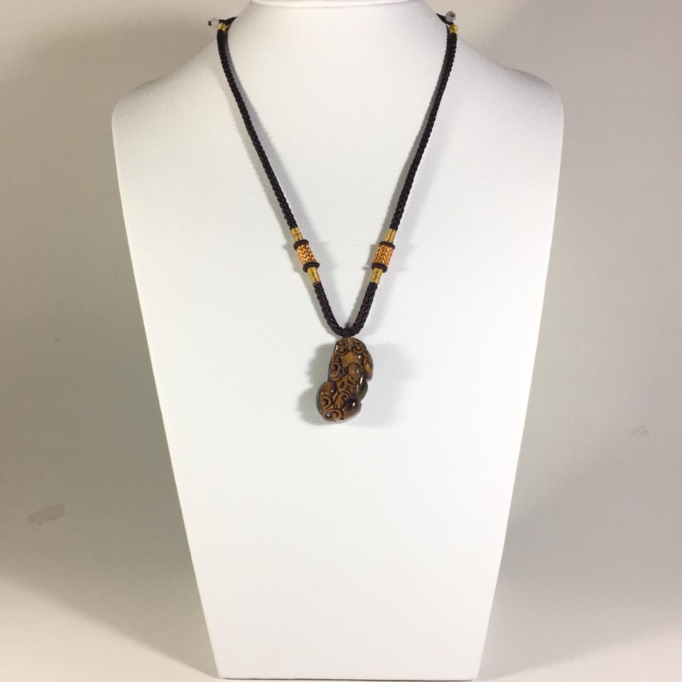 Mặt dây chuyền Bồ Tát Văn Thù đá mắt hổ nâu vàng – loại A