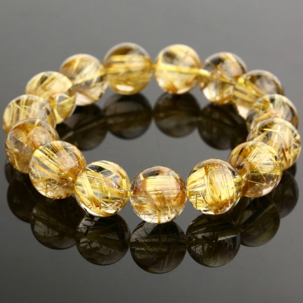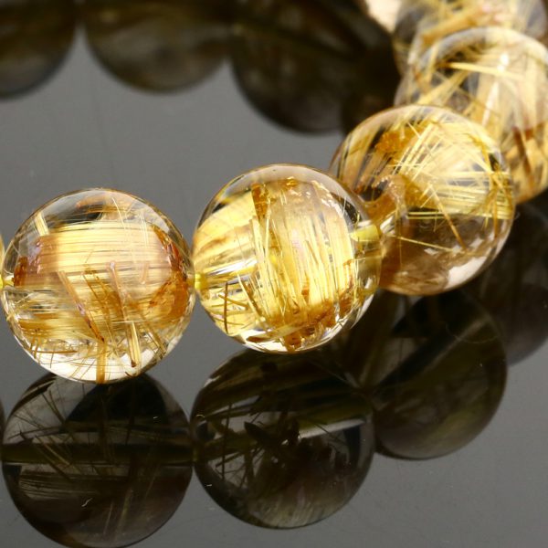 Vòng tay phong thủy thạch anh tóc vàng là sản phẩm cao cấp được chế tác thủ công từ đá quý thạch anh tóc vàng tự nhiên. Sản phẩm đạt chuẩn 5A theo các tiêu chí đánh giá về màu sắc, độ sạch, độ trong và kiểu cắt.